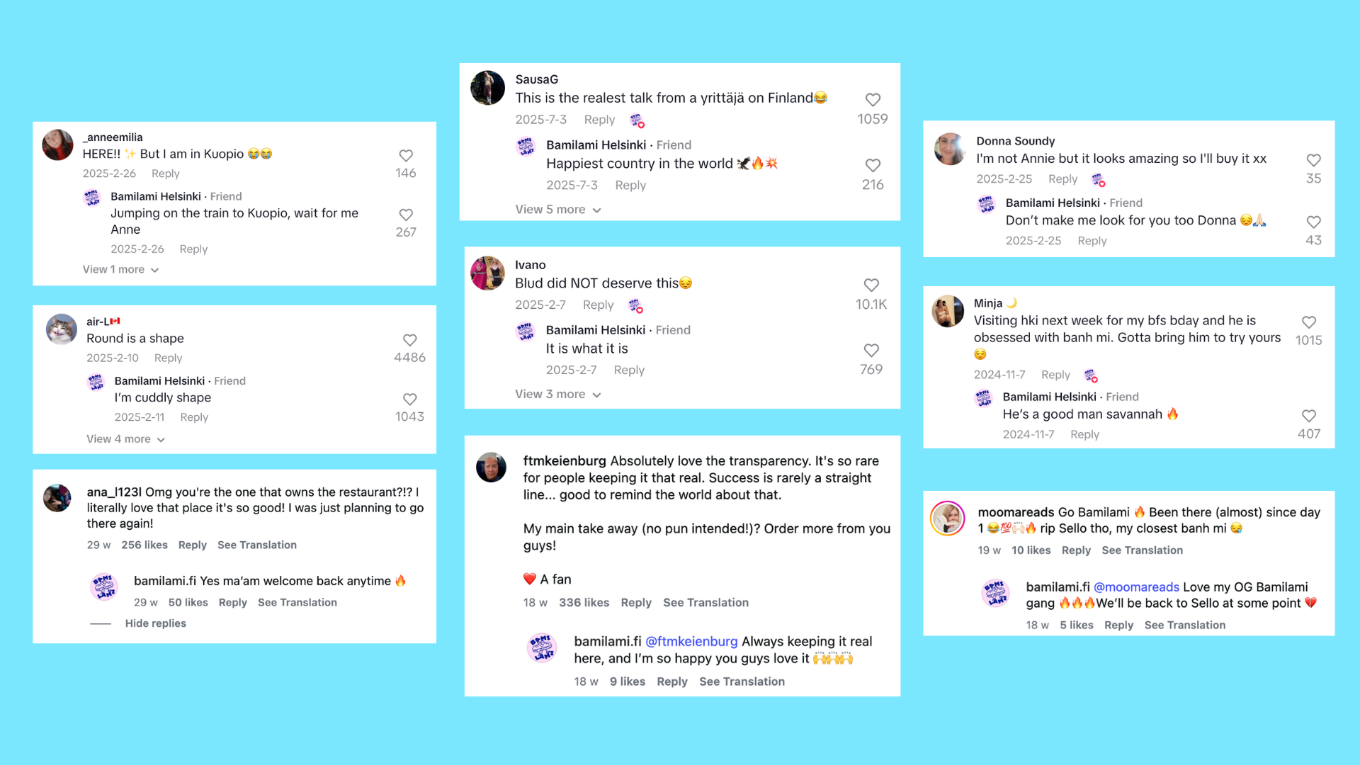 We built Bamilami’s social media presence and branding from the ground up, organically. From a completely unknown brand to a beloved local food stop, then to the most recognizable and most followed restaurant in Finland.